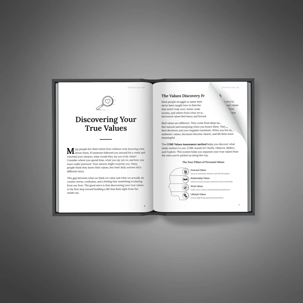 Ebook designed to help your customers set clear life priorities, stay focused on what matters, and build a more balanced and meaningful daily routine.
